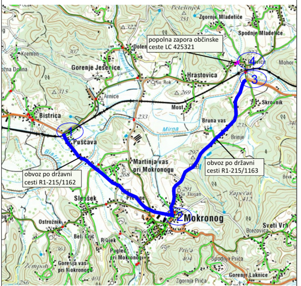 Popolna zapora občinske ceste zaradi rekonstrukcije mostu v naselju Pijavice