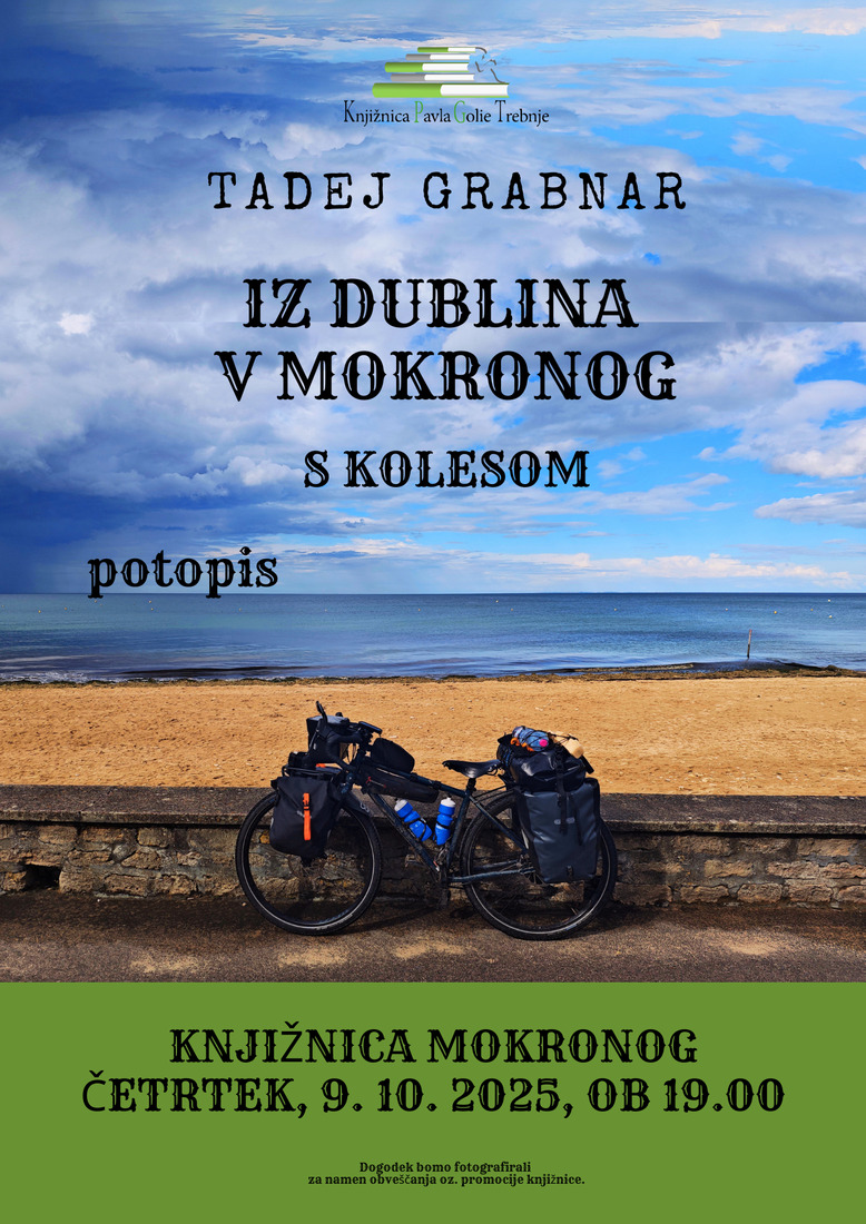 V četrtek, 9. 10. 2025, ob 19.00 vas vabimo v Krajevno knjižnico Mokronog na potopis Iz Dublina v Mokronog s kolesom Mokronožana Tadeja Grabnarja.