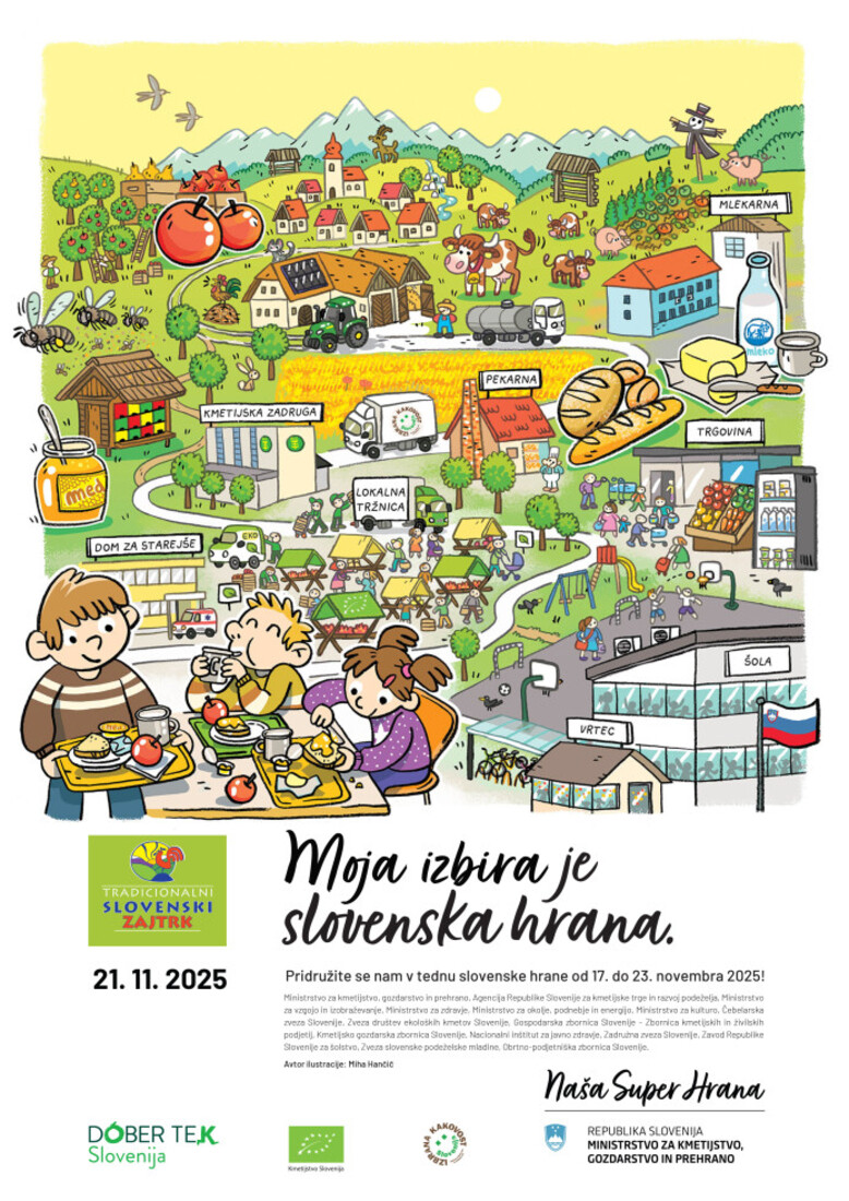 Kruh, maslo, med, mleko in jabolka – vsem dobro poznani okusi Tradicionalnega slovenskega zajtrka. Zajtrka, ki nas opominja na vrednost domače hrane ter povezuje z dvema pomembnima panogama: kmetijstvom in čebelarstvom. Res smo lahko hvaležni, da živimo v deželi, kjer nam narava še vedno omogoča, da našo mizo bogati preprost, a izjemno dragocen obrok.