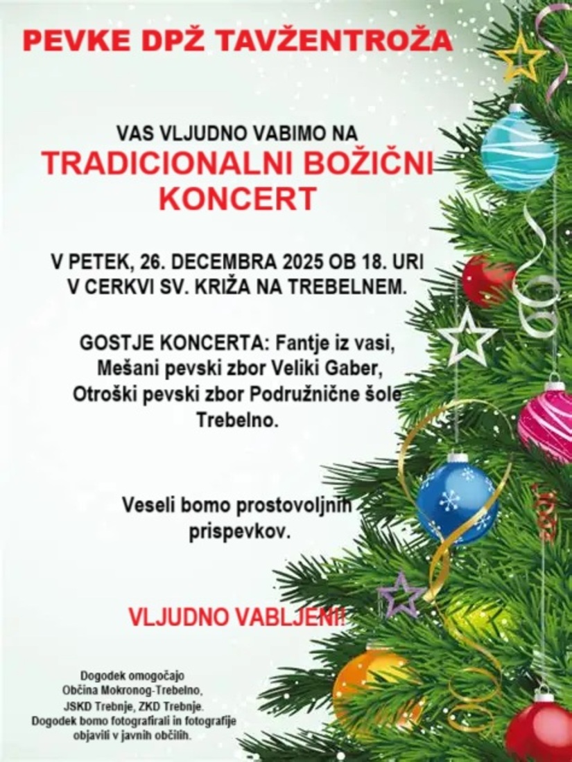 vas vljudno vabijo na Tradicionalni božični koncert,