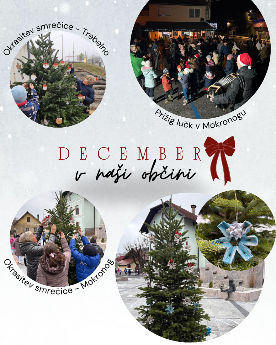 Za okrasitev božične smrečice so poskrbeli otroci iz Trebelnega (3. razred) in Mokronoga (5. razred). V petek, 5. decembra, pa smo skupaj z najmlajšimi in Barbaro Leben Bone – Barb, prižgali praznične luči.